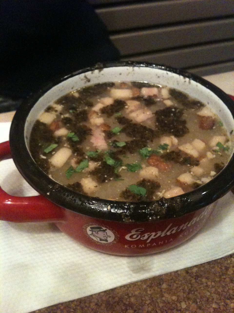 Żurek okazuje się niejadalny – czuć, ze jest z proszku i to najtańszego kupowanego w workach stukilogramowych. Co jest ku…? W Esplanadzie żurek z proszku? Rzadki i nie smaczny ;( Takiego czegoś nie jedliśmy dawno.