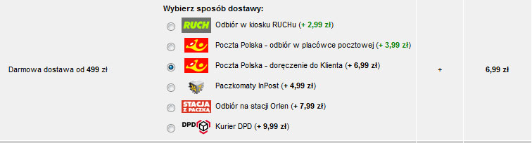 - Niskie ceny wysyłki (wszystkie formy bez wyjątku);